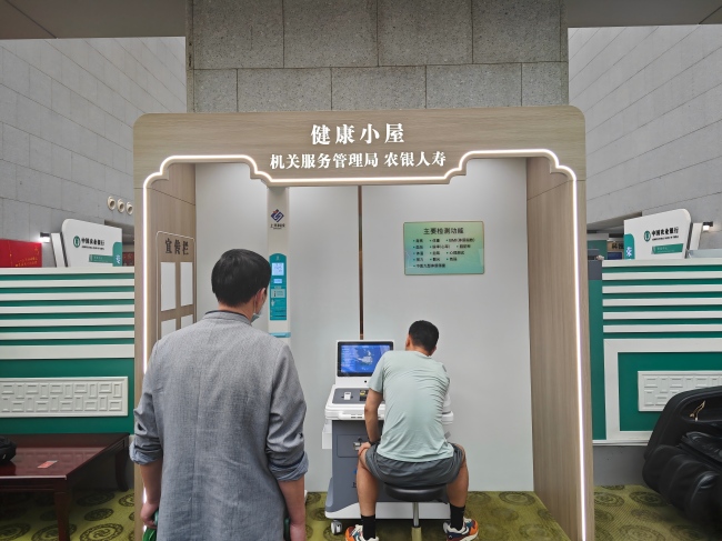在農(nóng)行總行大廈的北樓大廳,一座科技感十足的「健康小屋」悄然成為員工打卡熱點(diǎn)。這里沒有冗長的體檢排隊(duì),只需刷身份證站立5分鐘,身高、體重、體脂、血壓等多項(xiàng)核心指標(biāo)報(bào)告即時(shí)生成。支撐這一高效體驗(yàn)的,正是上禾科技